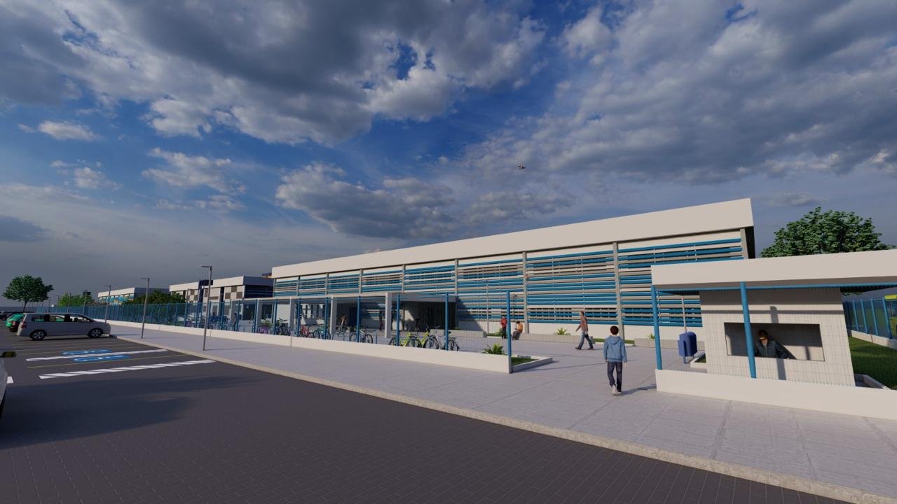 A escola será construída na Quadra 04 e contará com uma estrutura moderna e acessível, com 5.374,78 metros quadrados de área construída. O espaço incluirá 18 salas de aula, auditório, sala de música, grêmio estudantil, biblioteca, salas de artes plásticas e multimídia, laboratórios, espaços de apoio pedagógico, cozinha industrial e refeitório. A infraestrutura também prevê quadra de esportes coberta com vestiários, pátio coberto, bicicletário e sanitários.
