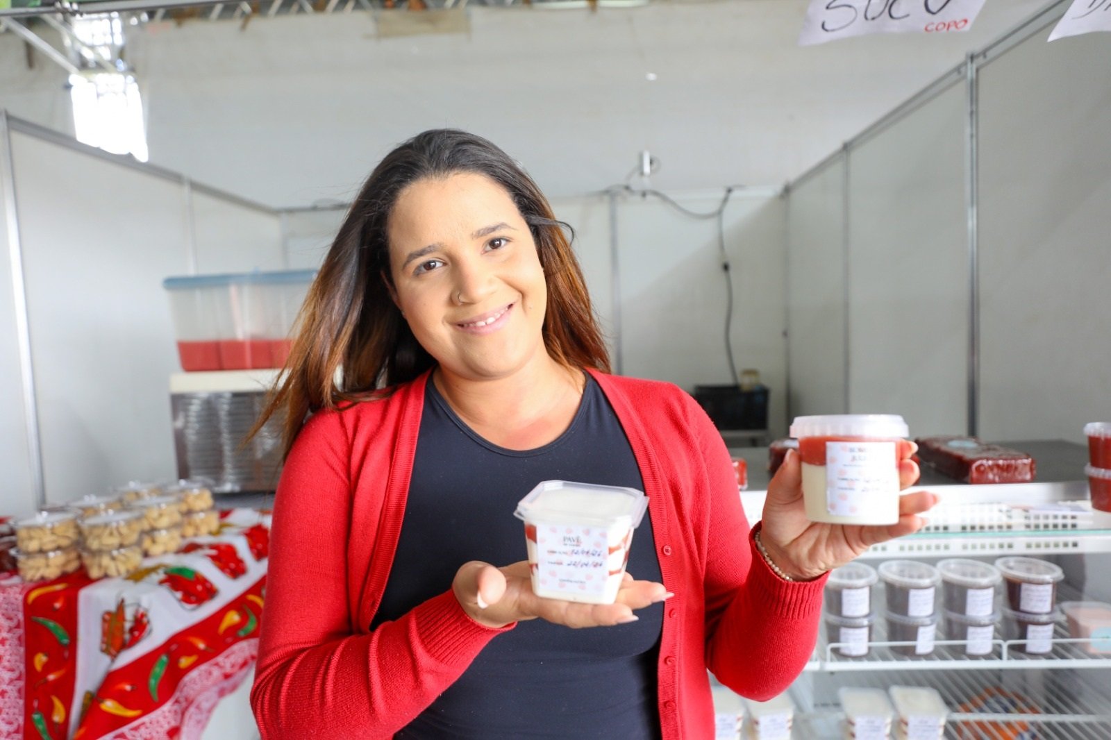 Há cinco anos, a família da produtora rural Larissa Malheiros, 26, trabalha na produção de derivados da goiaba. “A feira é muito importante para nós produtores, porque, muitas vezes, o pequeno produtor, que trabalha em menor escala, não tem espaço nos grandes mercados”, avaliou. “Aqui, a gente ganha visibilidade e reconhecimento. Acaba sendo uma vitrine para divulgar nossos produtos. Temos como carro-chefe o ‘mústio’ de requeijão com goiabada. Também oferecemos um pavê, feito com creme de leite Ninho, goiabada e biscoito Maria.”