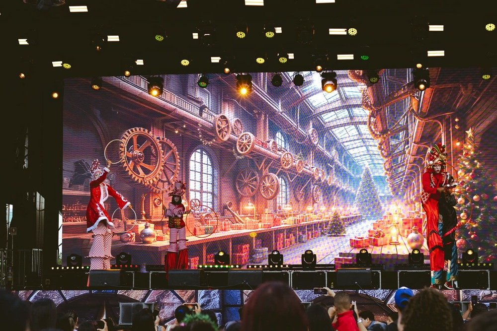 Com um total de 64.590 m², o espaço conta com áreas amplas e planejadas para circulação segura, acessibilidade e conforto. A cenografia adota soluções sustentáveis e convida o público a vivenciar o espírito natalino de forma consciente.