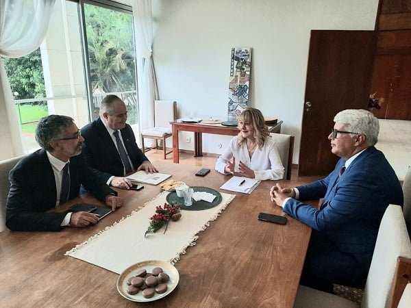 A Embaixadora da Bulgária no Brasil, Bojidara Sartchadjieva, vai visitar Rio Grande (RS) entre os dias 23 e 25 de fevereiro, para as comemorações dos 90 anos das relações diplomáticas entre Brasil e Bulgária. A visita vai coincidir com a chegada do navio de pesquisa polar búlgaro Sv. Sv. Kiril i Metodii, que depois seguirá para uma missão científica à Antártica. A logística e a agenda da Embaixadora foram discutidas, nessa segunda-feira (5), em reunião na sede da Representação Diplomática da Bulgária, em Brasília, com as presenças do secretário-executivo do Escritório de Representação do Estado (EBSB), Henrique Pires, do gerente de Planejamento e Desenvolvimento da PORTOS RS, Fernando Estima, e do assessor de Relações Internacionais do EBSB, Robson Valdez.